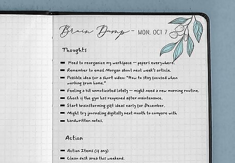 Brain dump Keep a page open for you to write out whatever’s on your mind at the time. No matter what’s going through your head, just let your thoughts loose on this page.