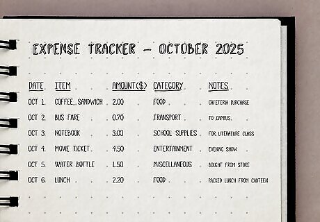 Expense tracker If you’re making a budget and want to see where your money is going, start listing out anything that you purchase and how much you spent. Categorize your expenses with different symbols or colors. At the end of the week or month, total up your expenses and see which category you’re spending the most in.