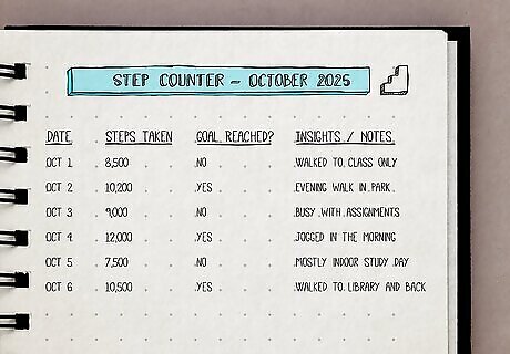 Step counter Make a graph or chart for every day. At the end of the day, check how many steps you’ve taken on your phone or pedometer and mark it down in your bullet journal. Set a daily step goal, and see how close you can get to it each day.