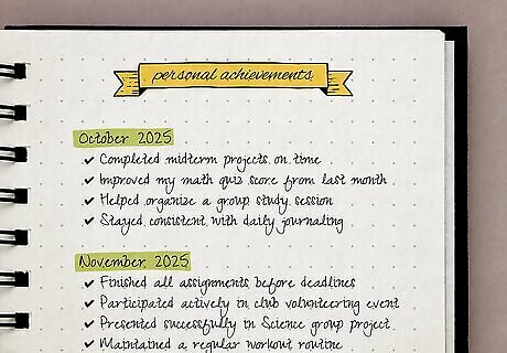 Personal achievements If you want to look back on all the things you’ve accomplished and achieved, jot down a list of the things that you’re proud of. You could recognize your achievements on a monthly or yearly page, or you could list all of your life’s achievements all in one place.