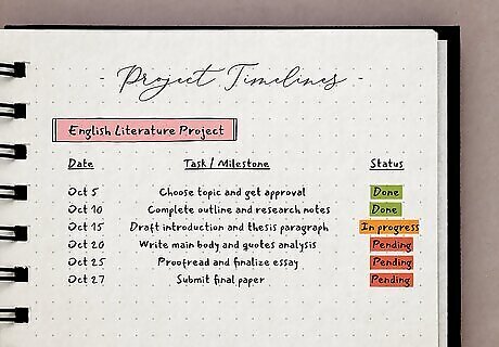 Timelines When you’re working on different projects, make a timetable for all the work that you need to get done and the milestones that you need to reach. Mark out each date clearly so you can see when you have deadlines and how much work you still need to get done.