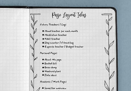 Page layout ideas If you have ideas for pages you want to use in a future bullet journal, note them down in your current one on the last page. That way, when you finish your bullet journal, you have a reminder to include the pages you jotted down.
