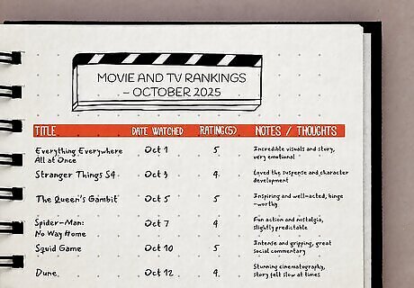 Movie and TV rankings If you love watching movies and TV shows, keep a log of everything you’ve watched. Write down the title, when you watched the movie, and give it a rating out of 5 or 10 stars. That way, you can look back on what you’ve seen and how much you liked it at the time.