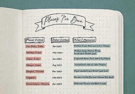 Places you’ve been Want to keep a log of everywhere you’ve traveled? Write out the cities that you’ve been to, or glue a map onto the page and color in anywhere that you’ve already visited.