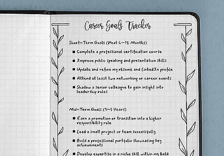 Career goals If you have long-term goals for what you want to do in your professional career, write them down on a fresh page so you can look at them easily. Keep your goals handy and track your progress as you work towards them, such as getting a raise or promotion, or landing your dream job.