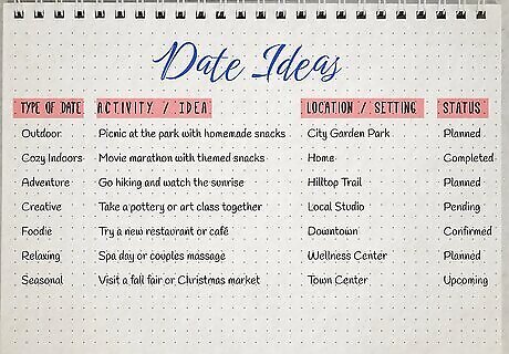 Date ideas If you’re always trying to figure out something sweet to do with your partner, keep a list of different dates that you want to try or activities that would be fun to do together. That way, you can easily find a date that’s perfect for any occasion. If you’re looking for some ideas to jot down, check out our list of dates that are perfect for you and your partner.
