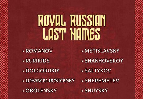 These surnames are connected to Russian royalty and aristocratic families. The primary Russian royal surname is Romanov, which was the last imperial dynasty and only family to hold the title of Tsar. Other historically noble, but not royal, surnames include Dolgorukiy, Saltykov, and Shuysky. Here are more examples, along with their meanings: Romanov - Means “son of Roman.” Rurikids - Means “son of Rurik.” Dolgorukiy - Means “long-handed” or “long-armed.” Lobanov-Rostovsky - Lobanov means “forehead,” while Rostovsky means “the ancient city of Rostov.” Obolensky - Means “to pay” or “to give.” Mstislavsky - Means “vengeful glory.” Shakhovskoy - Derives from the House of Shakhovskoy, which claimed descent from Konstantin Glebovich. Saltykov - Tied to the Saltykov family, who were granted the title of Count in 1730. Sheremetev - Means “to be a shepherd” or “to graze.” Shuysky - Tied to the princely House of Shuysky, a cadet branch of the Rurikid dynasty.