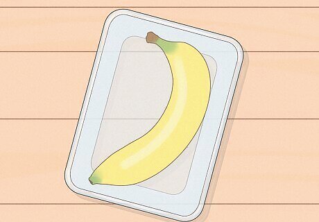 A plastic bag or resealable container can trap in freshness. Separate the bananas from the bunch, and keep each one in a small resealable bag or plastic container. Seal the container tightly and leave it out at room temperature until you’re ready to eat the banana. Because the bananas aren’t exposed to fresh air, the fruit releases ethylene gas more slowly. Bananas stored in an airtight container usually last for around 6-7 days before they start going bad. There’s some debate on whether storing bananas in a bag or container actually keeps them fresh. Some sources say that the trapped gases can make bananas ripen faster, so it’s better to leave them out.