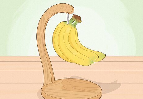 Hanging bananas imitates how they grow in nature. If you opt to keep your bananas together in a bunch, hang the stems from a banana hook. When you hang bananas, they’re less likely to press against each other and turn brown so you’re able to enjoy them for a few days longer. Try hanging your bananas after wrapping the stems in plastic wrap or foil to keep them fresh for even longer at home.