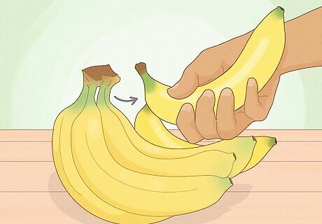 Green bananas take longer to ripen and go bad. Chef Woodward says, “I recommend buying [bananas when they’re] greener, especially if you don’t need them right away.” They’ll continue to ripen over the next few days, so you’ll have more time to enjoy them! Don’t forget that you can buy bananas from separate bunches. Try buying 2 yellow bananas to eat right away, 2-3 yellow-green bananas, and 2-3 that are completely green. That way, you have a perfectly ripe banana every day. Meet the wikiHow Expert Chef Jeff Woodward is a private chef and the owner of The Rogue Chef in Branson, MO. His celebrity clients include Justin Timberlake, Peyton Manning, Mark Wahlberg, and the Harlem Globetrotters.