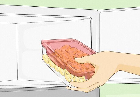 Frozen bananas stay ripe, but have a different texture. When your bananas are already ripe and about to turn brown, peel them and slice them into smaller pieces. Place them in a single layer on a baking sheet and freeze them for a few hours. Then, transfer the frozen pieces into an airtight container and place it back in your freezer. Frozen bananas are usually best if you use them within 3 months. Use frozen bananas to make a smoothie with other fruit pieces, like blueberries or strawberries. Defrost the bananas in your fridge so they’re completely thawed before using them to make banana bread or other baked goods.