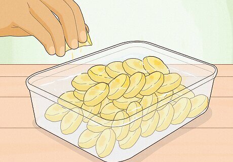 Sprinkle peeled banana pieces with lemon juice.
