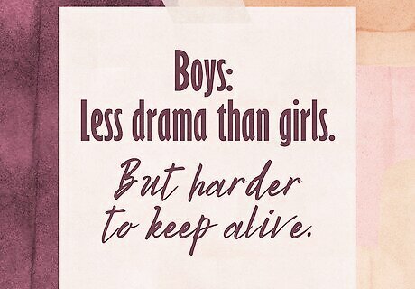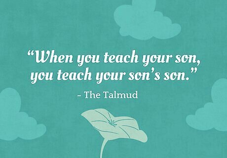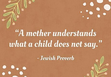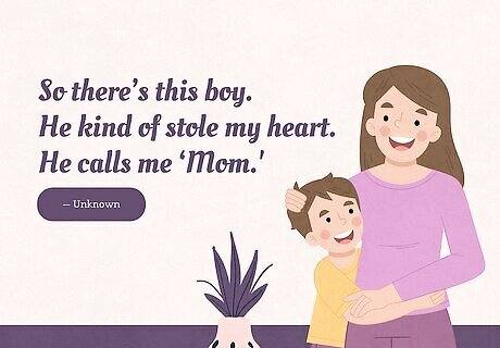 Keep things short and sweet with a brief quote about sons. Sometimes, a short message can be just as effective as a long one, as long as you stress your love and affection. Here are some simple quotes you can send in a text or write on a card: “A boy’s best friend is his mother.” — Joseph Stefano “You don’t raise heroes, you raise sons.” — Wally Schirra “No love is greater than that of a parent for a child.” — Unknown “Of all the animals, the boy is the most unmanageable.” — Plato “It is a wise father that knows his own child.” — William Shakespeare “A mother understands what a child does not say.” — Jewish Proverb “'Tis is a happy thing to be the father unto many sons.” — William Shakespeare “A boy needs a father to show him how to be in the world.” — Ian Morgan Cron “Children are educated by what the grown-up is and not by his talk.” — Carl Jung “A man never stands as tall as when he kneels to help a child.” — Knights of Pythagoras Proverb