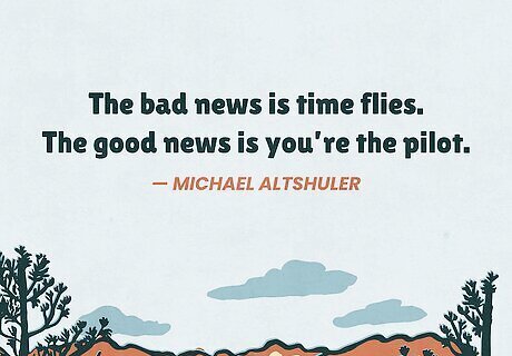 Encourage him to take on the world with an inspirational quote. Want to remind your son that he’s strong, brave, and capable of anything? Share an inspirational quote about dreaming big and pushing forward when things get tough. Here are some great options to give him a boost of confidence: “The journey of a thousand miles begins with one step.” — Lao Tzu “Act as if what you do makes a difference. It does.” — William James “My son, go after your dreams. Life is waiting for you to show up.” — Unknown "You are never too old to set another goal or to dream a new dream.” ― Les Brown “The bad news is time flies. The good news is you’re the pilot.” — Michael Altshuler “You may encounter many defeats, but you must not be defeated.” — Maya Angelou “All our dreams can come true, if we have the courage to pursue them.” — Walt Disney "We grow neither better nor worse as we get old, but more like ourselves.” — Bernard Baruch “Try not to become a man of success, but rather try to become a man of value.” — Albert Einstein “The future belongs to those who believe in the beauty of their dreams.” — Eleanor Roosevelt “You are braver than you believe, stronger than you seem, and smarter than you think.” — A.A. Milne “Believe in yourself, my son. You have everything it takes to become everything you want.” — Unknown “Don’t sit down and wait for the opportunities to come. Get up and make them.” — Madam C.J. Walker “My son, always remember that obstacles are what you see when you take your eyes off the goal.” — Unknown “Opportunity is missed by most people because it is dressed in overalls and looks like work.” — Thomas Edison “Do not go where the path may lead, go instead where there is no path and leave a trail.” — Ralph Waldo Emerson “I can't change the direction of the wind, but I can adjust my sails to always reach my destination.” — Jimmy Dean “Live the full life of the mind, exhilarated by new ideas, intoxicated by the romance of the unusual.” —Ernest Hemingway “Men do not quit playing because they grow old; they grow old because they quit playing.” — Oliver Wendell Holmes “To be yourself in a world that is constantly trying to make you something else is the greatest accomplishment.” — Ralph Waldo Emerson