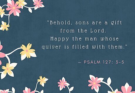 Express how blessed you are to have such an amazing son. If you want to guide your son or let him know you’re praying for him, turn to a meaningful verse in the Bible. Here are some powerful, loving options to share your gratitude and encourage your son to honor God: “Children are a gift from the Lord; they are a reward from him.” — Psalm 127:3 “My son, if your heart is wise, then my heart will be glad indeed.” — Proverbs 23:15 “Children, obey your parents in everything, for this pleases the Lord.” — Colossians 3:20 “And he said to him, ‘Son, you have always been with me, and all that is mine is yours.” — Luke 15:31 “Correct your son, and he will give you comfort; He will also delight your soul.” — Proverbs 29:17 “Behold, sons are a gift from the Lord. Happy the man whose quiver is filled with them.” — Psalm 127: 3-5 “As a father shows compassion to his children, so the Lord shows compassion to those who fear him.” — Psalm 103:13 “Honor your father and your mother, that your days may be long in the land that the Lord your God is giving you.” — Exodus 20:12 “Hear, my son, your father’s instruction, and forsake not your mother’s teaching, for they are a graceful garland for your head and pendants for your neck.” — Proverbs 1:8-9 “A woman giving birth to a child has pain because her time has come; but when her baby is born she forgets the anguish because of her joy that a child is born into the world.” — John 16:21