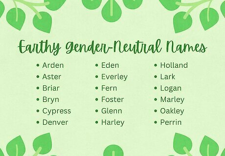 At the end of the day, no name is restricted to a particular gender; some names just have more traditionally masculine or feminine associations. Then, there are the names that aren’t overtly masculine or feminine—meaning they’d feel absolutely lovely on just about anyone! Take a look at these earthy, gender-neutral names: Arden - English origin, meaning “valley of eagles; great forest” Aspen - English origin, meaning “aspen tree” Aster - Greek origin, meaning “star” (also the name of a flower) Briar - English origin, meaning “thorny brambles, bush of wild roses” Bryn - Welsh origin, meaning “hill” Cypress - Greek origin, meaning “cypress tree” Denver - English origin, meaning “green valley” Eden - Hebrew and Babylonian origin, meaning “delight; plains” Ellery - Old Norse and Latin origin, meaning “alder nook” Everley - English origin, meaning “from the boar meadow; ever’s meadow” Fern - English origin, referring to a green, leafy plant Foster - English origin, meaning “keeper of the forest” Glenn (Glen) - Scottish and Gaelic origin, meaning “valley” Harley - English origin, meaning “hare’s meadow” Holland - Dutch origin, meaning “wooded land” Lark - English origin, meaning “songbird” Logan - Scottish origin, meaning “little hollow” Marley - English origin, meaning “pleasant wood” Oakley - English origin, meaning “oak clearing” Perrin - French origin, meaning “rock, stone” Raven - English origin, meaning “black bird” Ridley - English origin, meaning “reed clearing” Riley - Irish and English origin, meaning “rye clearing” Topaz - Greek and Latin origin, meaning “golden gem; precious stone” Wren - English origin, meaning “small brown songbird” Yael - Hebrew origin, meaning “mountain goat; ibex”