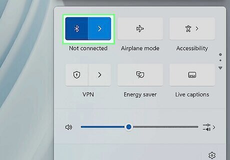 Click the Bluetooth tile to turn on Bluetooth. The Bluetooth tile is between the Wi-Fi tile and the Airplane mode tile. It has an icon of a runic B. If you don't have any Bluetooth devices connected, it'll say "Not connected" under the tile. If the Bluetooth tile already has a colored background, then Bluetooth is already enabled and you can proceed with pairing a device.