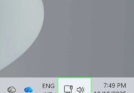 Click the network, sound, or battery icon next to the time and date. These buttons are located on your taskbar, in the bottom-right corner of the screen. The network button has a Wi-Fi signal icon, the sound button has a speaker icon, and the battery icon (only on laptops) has a battery icon.