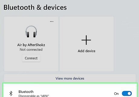 Click the toggle next to "Bluetooth." If the toggle already says On, Bluetooth is already enabled in your computer's settings, and you can proceed with pairing a device.