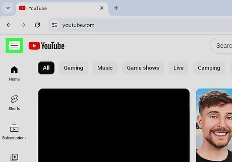 Tap the compass icon. You can find this in the top-left corner, below the YouTube logo. A side menu will open. On Smart TVs and consoles, select ☰.
