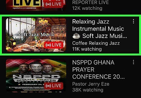 - To find live streams on the YouTube mobile app, tap the "Explore" (compass) icon, then tap "Live".