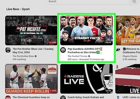 Select a live video to watch it. It will begin playing. You'll see sections for Live Now, Recent Live Streams, Upcoming Live Streams, and more. Select View all next to the header to expand the videos for that section. When you subscribe to someone and have their alerts enabled, you'll be notified when they go live.