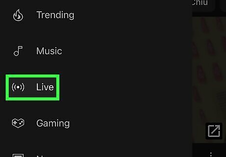 - On a computer, click "☰" to open the menu, then click "Live" to browse active and future live streams.