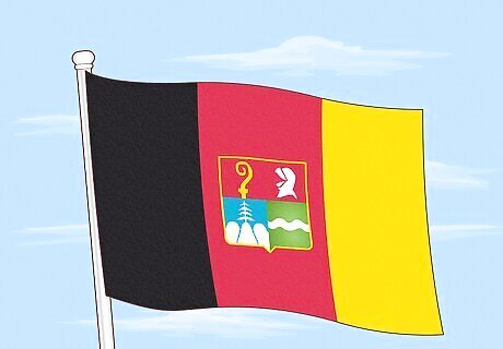Republic of Saugeais Like the Belgian flag, the Republic of Saugeais has a background of three vertical stripes in black, red, and gold (from left to right). The center of this flag, however, features the republic’s coat of arms, which depicts a yellow bishop’s staff, a white knight’s helmet, a white pine tree, and a white river. While there’s no official explanation of the flag, the colors are believed to be influenced by the region’s early German settlers and the colors of the French region, Franche-Comté. Note that the Republic of Saugeais is not an officially recognized country—it’s a self-proclaimed micronation in eastern France. Year of Adoption: 1947. Designer: Unknown. However, the coat of arms was designed by Colonel Henri de Saint-Ferjeux.