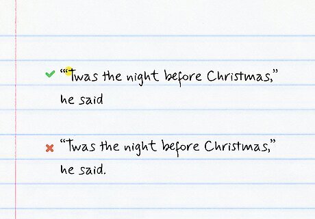 Do not separate the apostrophe from its word. An apostrophe is part of the word it belongs to, so do not separate it from that word with other forms of punctuation, like periods, commas, or quotation marks. Ex: Write Can I ask you somethin’? rather than Can I ask you somethin?’ Ex: Write “‘Twas the night before Christmas,” he said, rather than ’“Twas the night before Christmas,” he said.