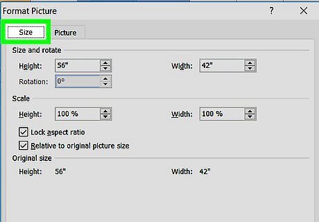 Click Format Picture. It’s the photo icon in the “Header & Footer Elements” group at the top of Excel. This opens the "Format Picture" window to the “Size” tab.