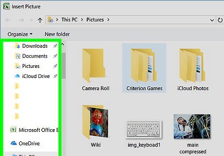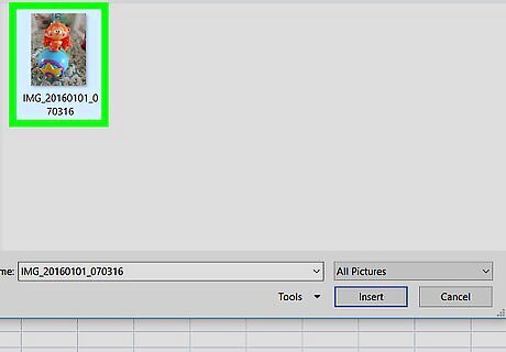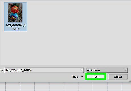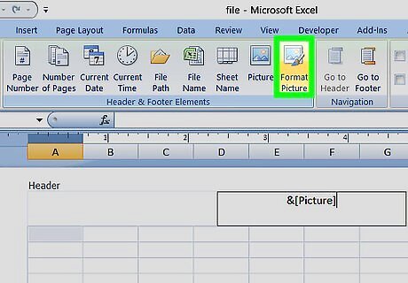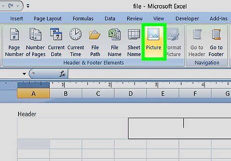 Click Picture. It’s in the group of icons labeled “Header & Footer elements" at the top of Excel, near the center.