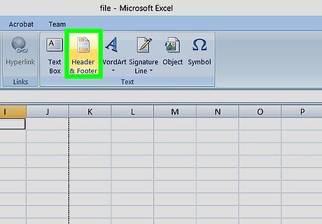 Click Header & Footer. It’s near the end of the row of icons at the top of Excel. Its icon looks like a white sheet of paper with orange markings at its top and bottom edges.