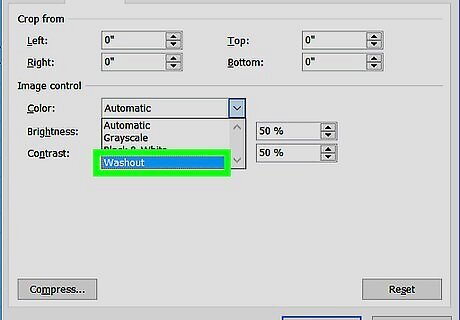 Select Washout from the “Color” drop-down. It’s under the “Image control” header. This fades the watermark so that it doesn’t completely block out the content of the spreadsheet. It’ll still be visible, just less opaque.