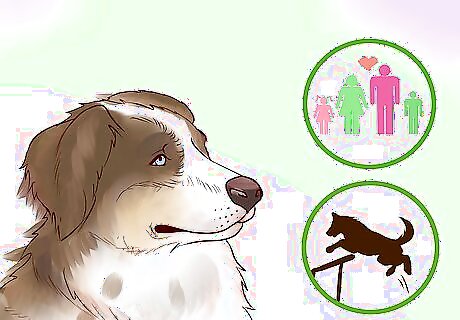 Consider other herding dog breeds. The two other herding dog breeds you may consider are the Louisiana Catahoula Leopard Dog and the McNab Shepherd. Both breeds are medium to large sized dogs that can weigh between 40 to 100 lbs. If they are raised from puppyhood, they can be good with children. Both breeds can be very smart, energetic, and loyal. Both breeds require at least one to two hours of exercise a day. They may do best with one pet families as they will need attention and hands on care to thrive.