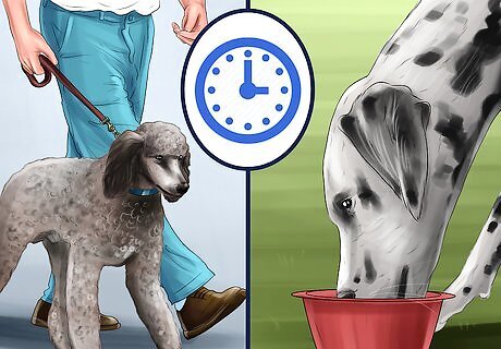 Develop a routine. Start your dog’s new routine as soon as possible after you bring it home. Take the dog on walks at the times when you intend to walk it. More importantly, feed it during regular feeding times. Establishing a routine will help your dog relax and feel more at home. If your non-sporting breed dog is taking any medications, make sure that it continues taking those medications regularly. To help regulate its digestive tract, consider feeding your dog the same food that it ate at the kennel. This will help it feel less anxious and avoid developing any digestive issues.