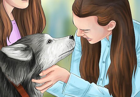 Visit the dogs. Once you have found some prospective dogs, you should call the shelters and make plans for a visit. An in-person visit will help you get a better feel for the energy levels of different dogs. In order to determine how well you will get along, you should take the dog for a short walk and play with it. Most shelters will allow you to walk the dog and play with it. This should help you gauge the dog’s temperament and get a better feel for its personality. If you have any other pets, be sure to bring them along. If your pets do not get along with the potential adoptee, it is not a good match. You should also bring along any family members to help you get a feel for your family’s connection to the potential pet.
