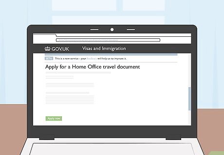 Visit the Visas and Immigration website to start your application. Go to https://visas-immigration.service.gov.uk/product/travel-document and click the green button at the bottom of the page with the words "Apply now." You will then be asked about your location. Click the circle next to "yes" if you are currently in the UK. After you provide your location, you'll be asked to select which type of travel document you want to apply for. If you're not sure, click on the question so see who qualifies for each type.Tip: If you don't feel comfortable using a computer or do not have internet access, you can get help over the phone by calling 03333 445 675. This phone line is open Monday through Friday from 9:00 a.m. to 5:00 p.m.
