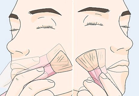 Select powder foundation for a more even application. While both powder and liquid foundations provide great coverage, powder foundation tends to be easier to apply evenly. Unlike liquid foundation, which needs to be applied and blended with precision, you can easily apply powder foundation all over your face with a large Kabuki brush without needing to see what you are doing. It is also much more difficult to over-apply powder foundation. With liquid foundation, on the other hand, too much makeup in one area can result in a caked-on look. If you do choose to use a liquid foundation, using a blending sponge all over your face after applying can help you even-out your foundation, though this may take some time and practice to perfect.