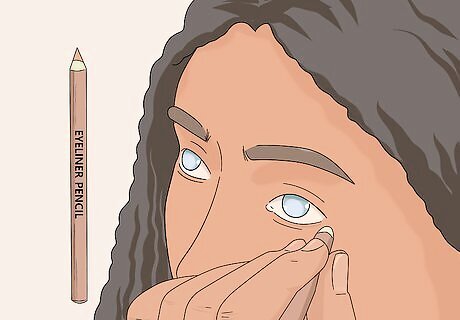Use a pencil eyeliner for easier application. When shopping for makeup, choose a pencil eyeliner over a liquid. Pencil eyeliners are much easier to control for a more precise application. In addition, unlike liquid eyeliners, if you make a mistake with a pencil eyeliner, you can easily use your finger or a small precision brush to smudge the liner to create a smoky eye look. If you want to ensure that your pencil eyeliner is precise, you can purchase makeup tape (or use any tape that doesn’t irritate your skin) to place on your face and help guide you as you apply your eyeliner. To do this, find the corners of your eyes with your fingers and place the middle of the makeup tape just below your finger. Press the tape down to secure in place. You can now follow the top line of the tape to create a precise eyeliner look, such as a winged look or cat eyes.