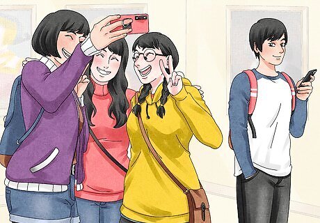 Go out in small groups. If you are in the market for love, one way to attract male attention is to travel is small groups. When you go out in large groups (more than three friends), you will likely intimidate the nice guy who wants your number. When you are out on the prowl, limit your numbers and open yourself to love.