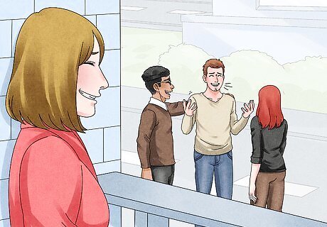 Use your body language. You don't need to immediately start talking to a guy to attract him. If you are open to being approached while you're out, indicate this with your body language. Don't stand with your shoulders square to the person you're talking to, but instead, keep an open stance. Let your shoulders stay relaxed, and wear a smile. All of these little actions send out good vibes, and communicate that you're open to meeting a nice gentleman.