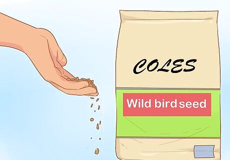 Set out wild bird seed and grains near the ground cover. Purchase wild bird seed and grain sorghum. Then scatter it near the shrubs and ground cover. The quail will be attracted to the food, but will be protected by the plants. You can find wild bird seed formulated for quail at most local pet stores or online.
