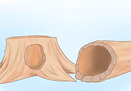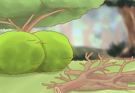 Arrange hollow logs or stumps in your space. Hollow logs make great hiding spots or places for the quail to nest and feed. Place a few hollow logs near the shrubbery and ground cover. This will encourage the quail to investigate the logs. You should also set out a stump or large piece of timber. If you attract a flock of quail, the male leader will perch on the stump.