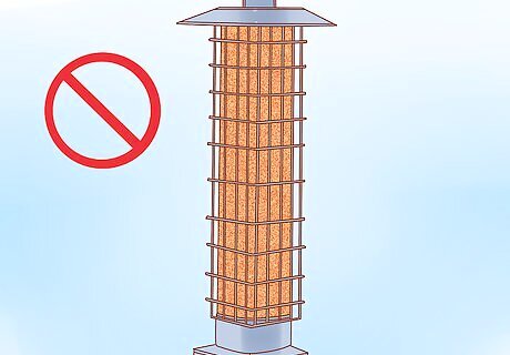 Avoid using hanging bird feeders. Quail don't fly and they don't like to perch while they eat, so don't put food into bird feeders that hang from trees. If you still want to use a feeder, purchase one that sits just off of the ground and fill it with wild bird seed. Keep in mind that predators, such as house cats or rats, may be drawn to the quail as they gather near the ground feeders.