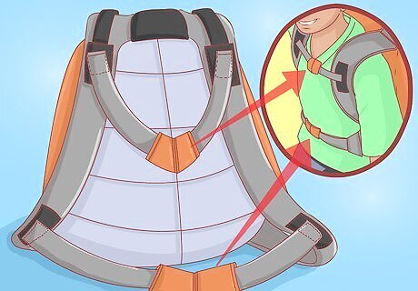 Ensure a snug and secure fit. In addition to reducing the overall load carried, you can also decrease the likelihood of soreness or injury by making sure that your child wears the backpack properly. The weight of the pack should be distributed primarily over the shoulders and upper back, with the chest in support — these are some of your strongest muscle groups. Straps should be snug without cutting into the shoulders. The bag portion should be centered on the mid-back, with the bottom of the bag sagging no more than four inches below the waistline. The bag should never touch the child's backside while being worn.