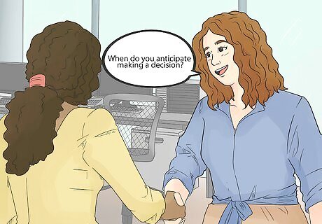 Leave the interview knowing what happens next. You need to know what happens next. Having this information will help keep you from fretting about an offer and more importantly it will facilitate effective follow-up. Questions such as, "When do you anticipate making a decision?" or "When should I expect to hear from you?" are completely appropriate.