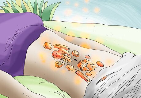 Use healing stones or crystals. These are powerful objects to influence and help balance your sacral chakra. It’s important to have these near you if your sacral chakra is blocked; you can also place the crystals or stones on your body. Use orange-colored healing stones, as these will have the greatest effect on your sacral chakra. These stones include carnelian and orange calcite. Moonstone is also associated with the sacral chakra, due to its affiliation with water. Healing moonstones will help balance this chakra.