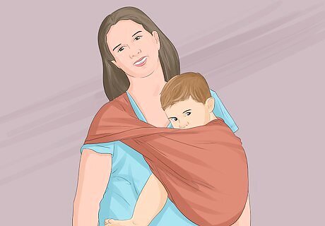 Wear your baby in a sling. There are many benefits to wearing your child in a baby sling or papoose. It promotes physical development for the child, it is convenient, and it promotes security.
