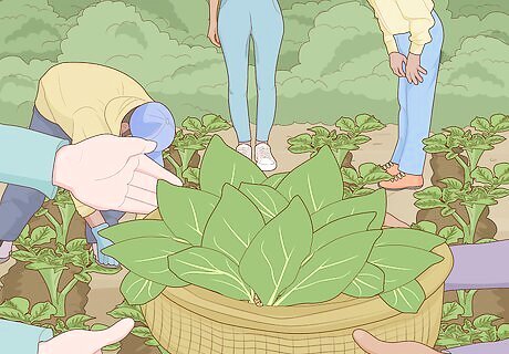 Join a community-supported agriculture group to receive fresh produce. Community-supported agriculture groups are initiatives where, in return for a small financial investment in a local farm, you receive a share of the seasonal produce. This is a great way for locavores to connect with local farmers and to forge relationships. Ask around in your community network or use a search engine to find a community-supported agriculture group in your area. Some community-supported agriculture groups offer produce in exchange of a few hours of work at the farm each week. This is a great way to get involved in growing produce in your community!