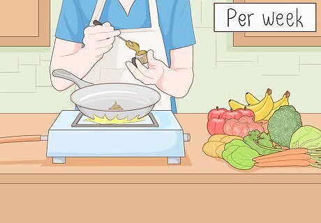 Cook 1 meal that’s made fully from local ingredients each week. Preparing a meal that is made entirely from local foods is a great way to get started slowly and to help your family and friends to get involved in the movement too. Look around at the foods are in season in your area and then pick a recipe with ingredients that match. Try to choose a certain day each week and stick to it to get into a regular routine. It can be helpful to pick a weekend rather than a weekday because farmers markets are usually held on a Saturday or Sunday. This means that you can take your pick of the freshest local produce.